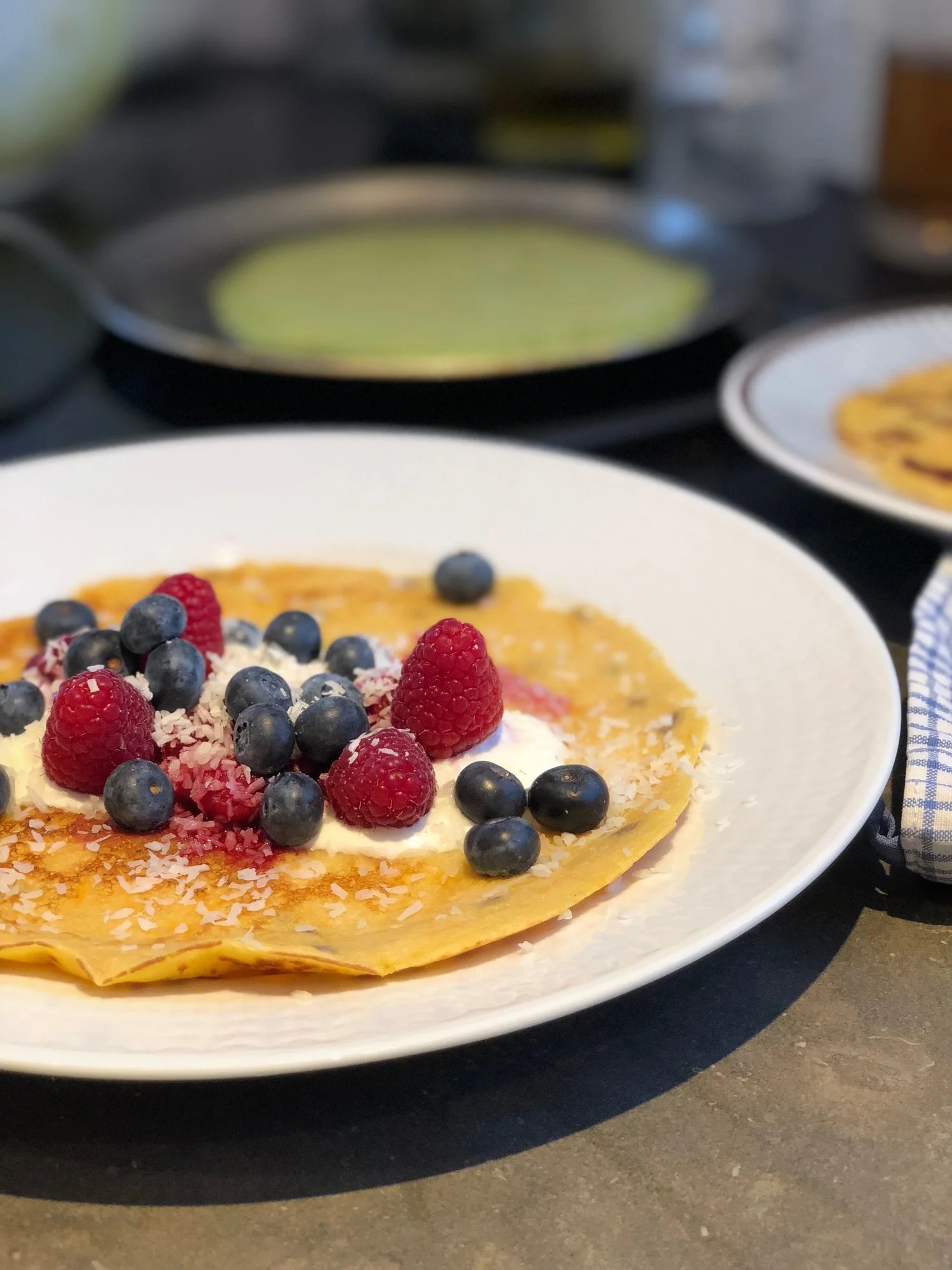 En i familjen älskar pannkakor och det står gärna på frukostbordet, speciellt när syskonbarnen är på besök. Här är vårt favvorecept med både kikärtor och morot. Enjoy!