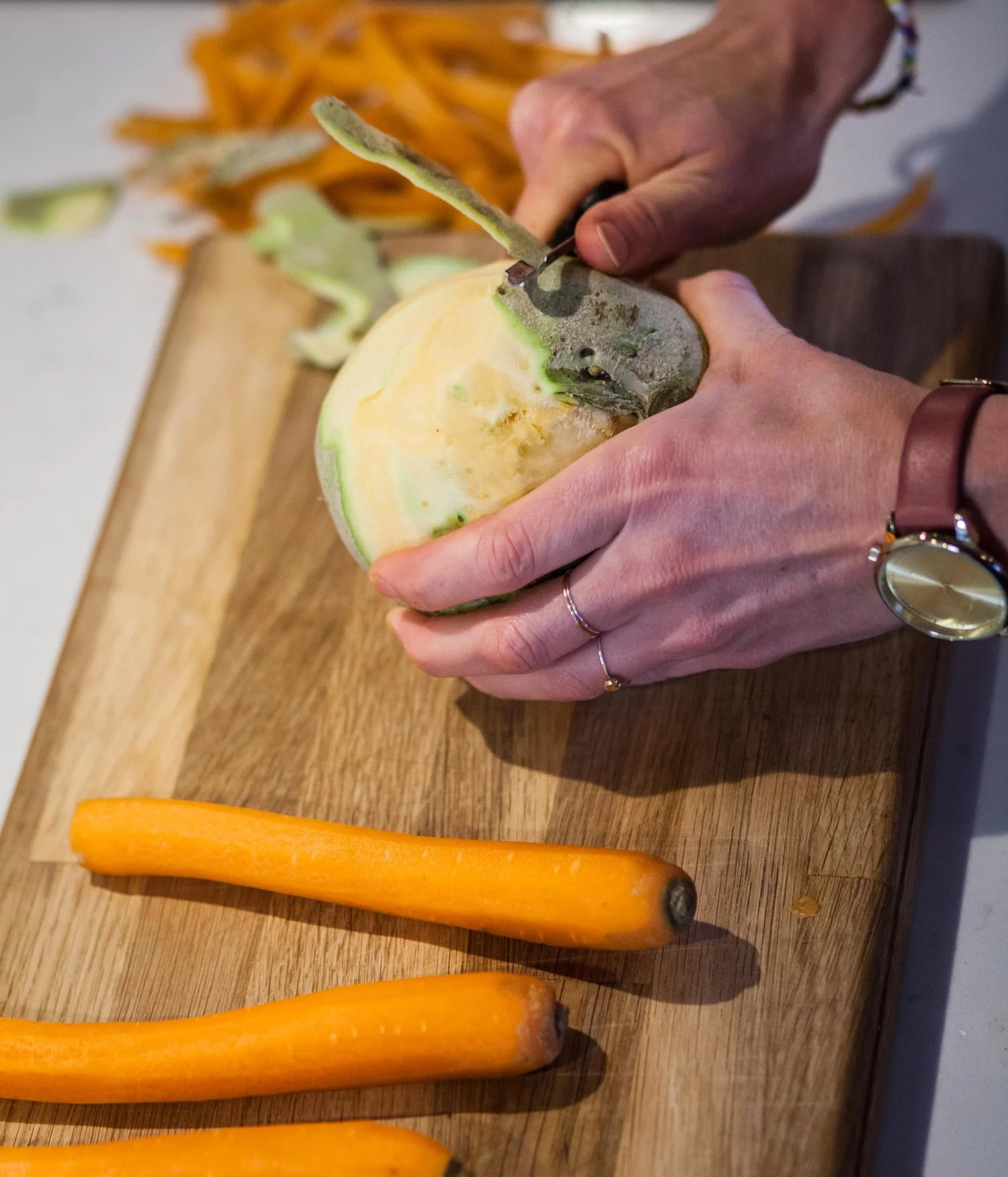Jätte god sallad till blomkålspizzan här ovanför. Fram med rivjärnet och gör en stor bunke nu. Håller i kylen flera dagar och passar utmärkt som veckosallad, alltså en sallad som står klar i kylen redo att pimpa vardagsmaten med. Inte så ofta vi äter kålroten rå, det kanske är dags att börja! Som vi brukar säga lägg undan gurkskivorna och isbergssalladen och lägg en rejäl grönsakshög på tallriken som inte bara är smakrikt god utan som även ger dig massa nyttigheter. I detta fall gott om fiber och prebiotika till tarmfloran, vitamin C, B och folat.
