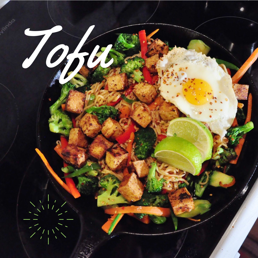 Skala och strimla två morötter. Kärna ur och strimla två paprikor. Dela en broccoli i mindre bitar. Dela 300g tofu i fyrkanter och stek i en panna med olja tills det tar färg. Häll på 0,75dl soja och 1 msk sesamolja och låt koka in. Tillsätt grönsakerna och stek på hög värme. Tillsätt nudlarna, 0,5tsk chiliflakes, 1dl sweet chilisås och vänd runt.