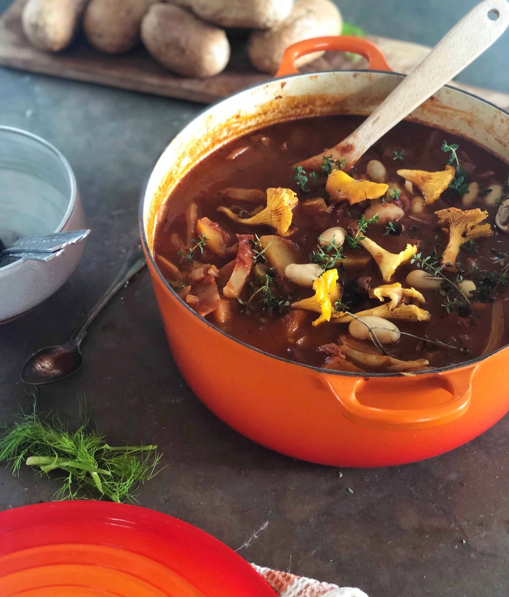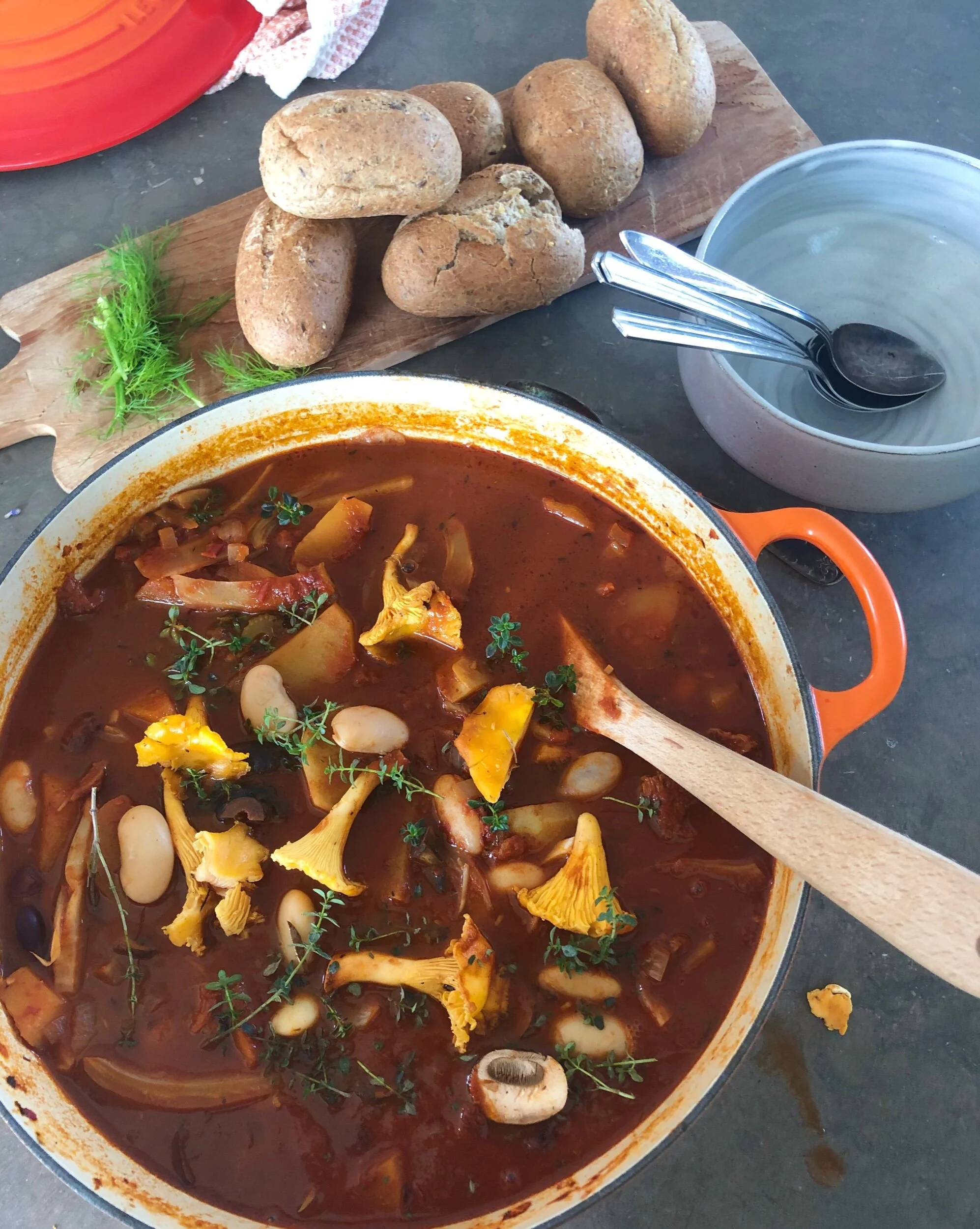 Använd hela fänkålen, inklusive stänger och spara fänkålsdillen som topping på grytan.