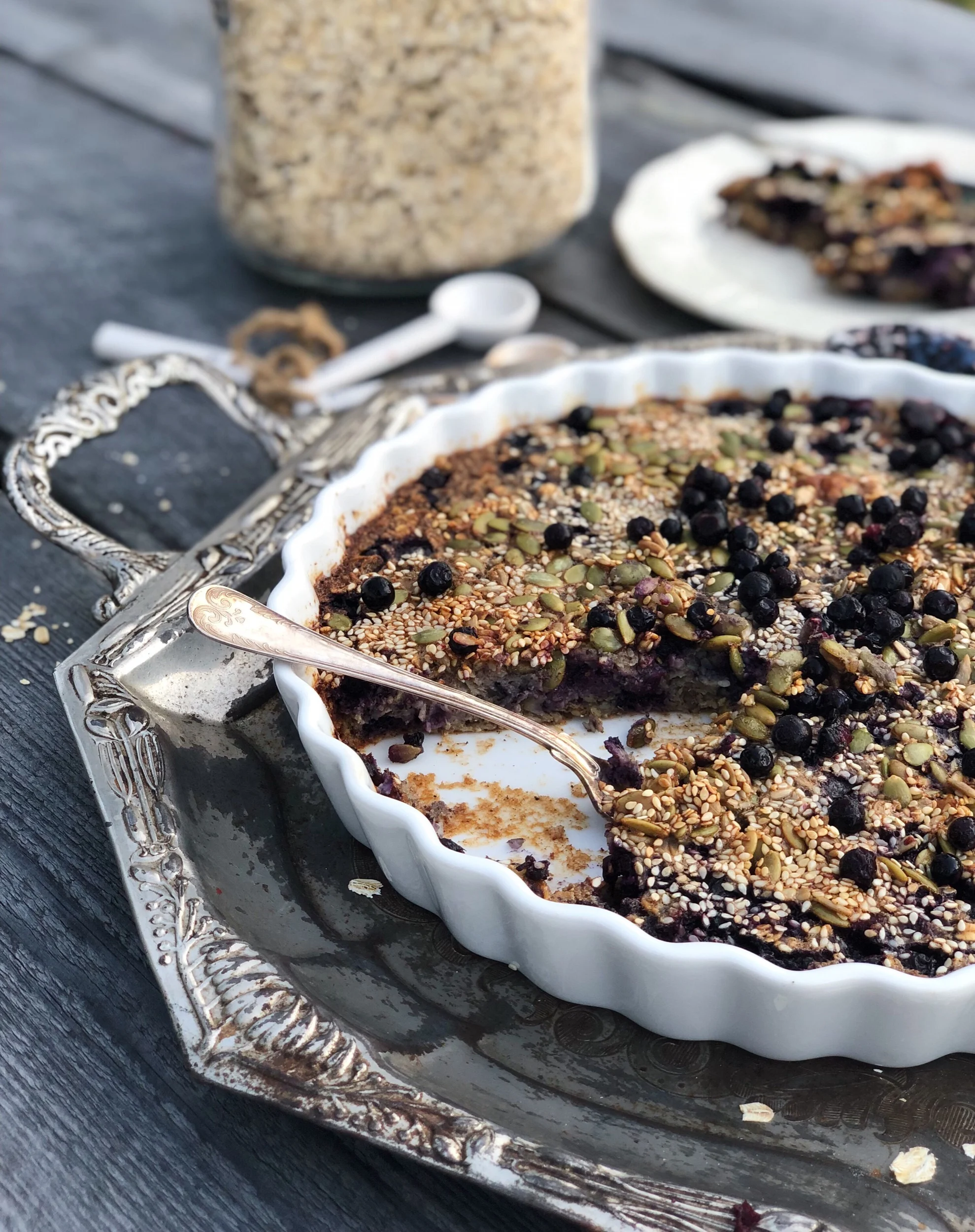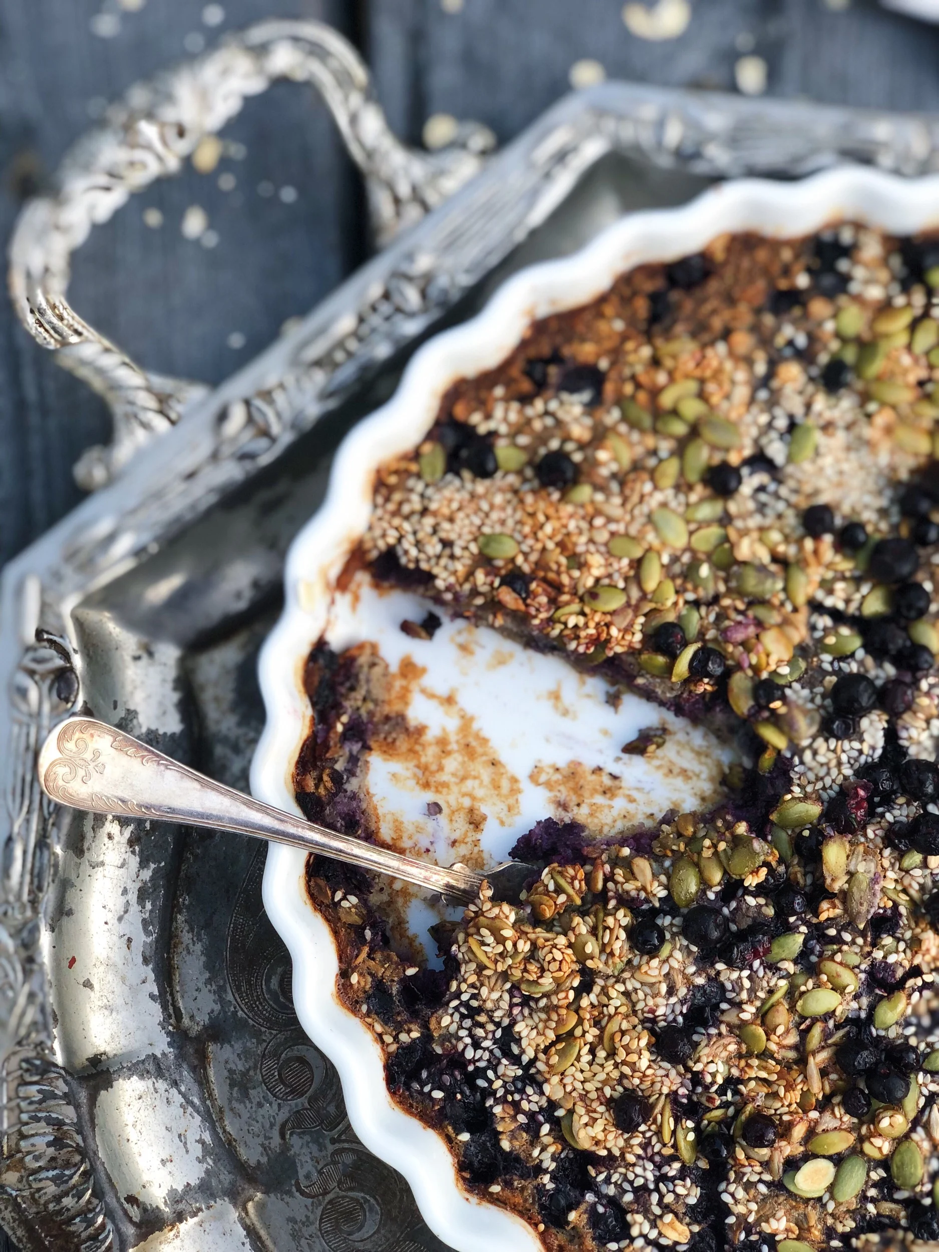 Servera bakad havre ljummen med lite yoghurt och extra blåbär.HH