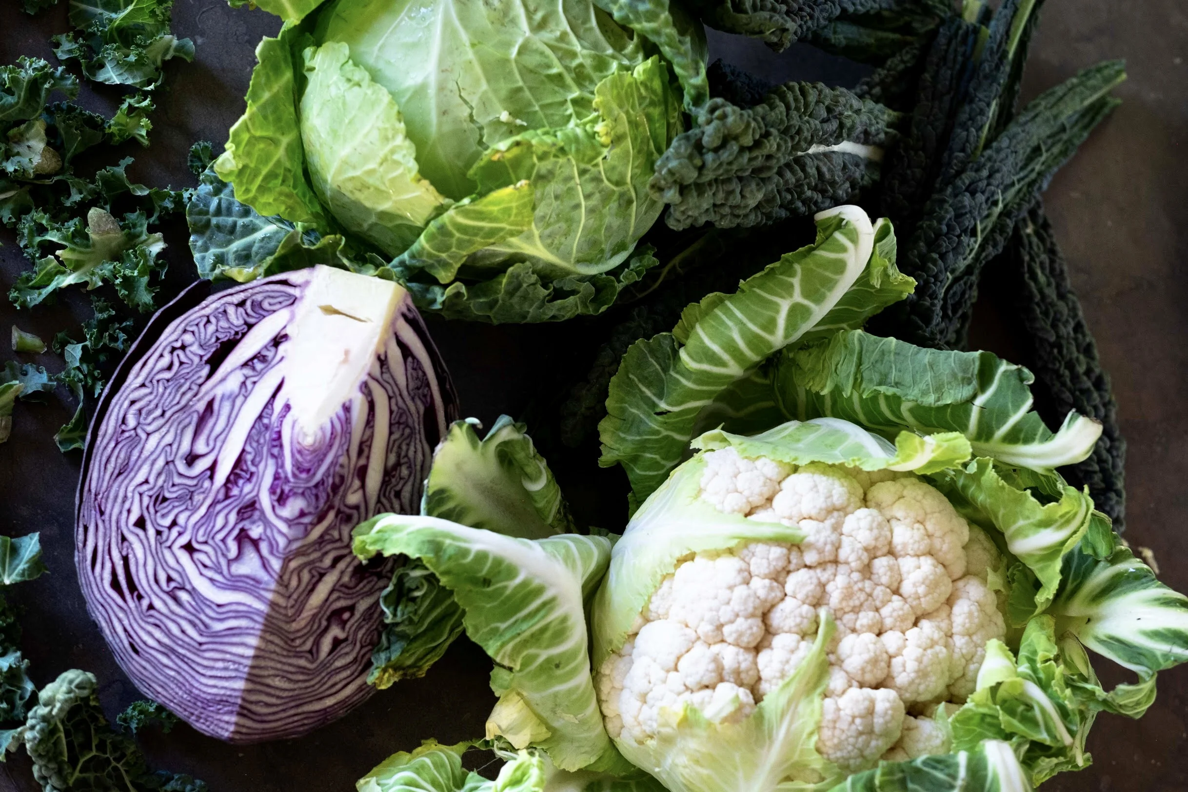 Dela grönkål och massera med pressad citron, tahini, salt.