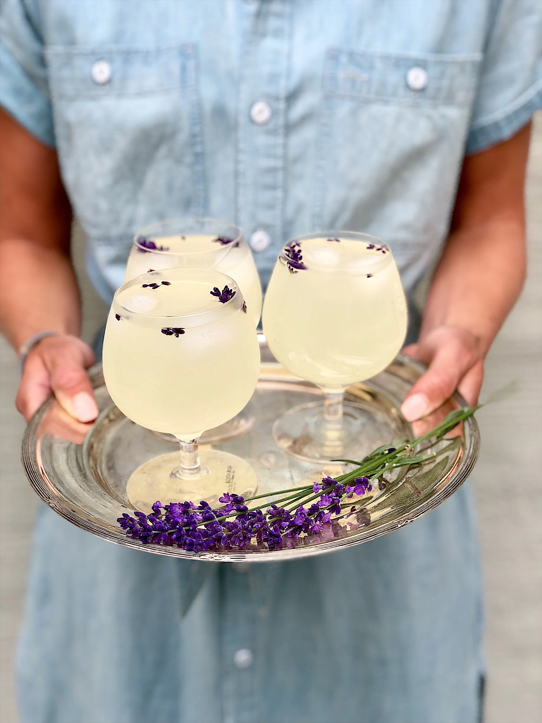 Lägg 2dl torkade lavendelblommor i en skål och häll på 1L kokande vatten. Låt dra 10min och sila sen bort blommorna. Tillsätt 6 dl pressad citron och 4 dl socker, rör om och låt svalna. Späd med 2 L vatten. Servera kyld med massa is, skivad citron och om du vill, toppa med bubbel av önskad sort.