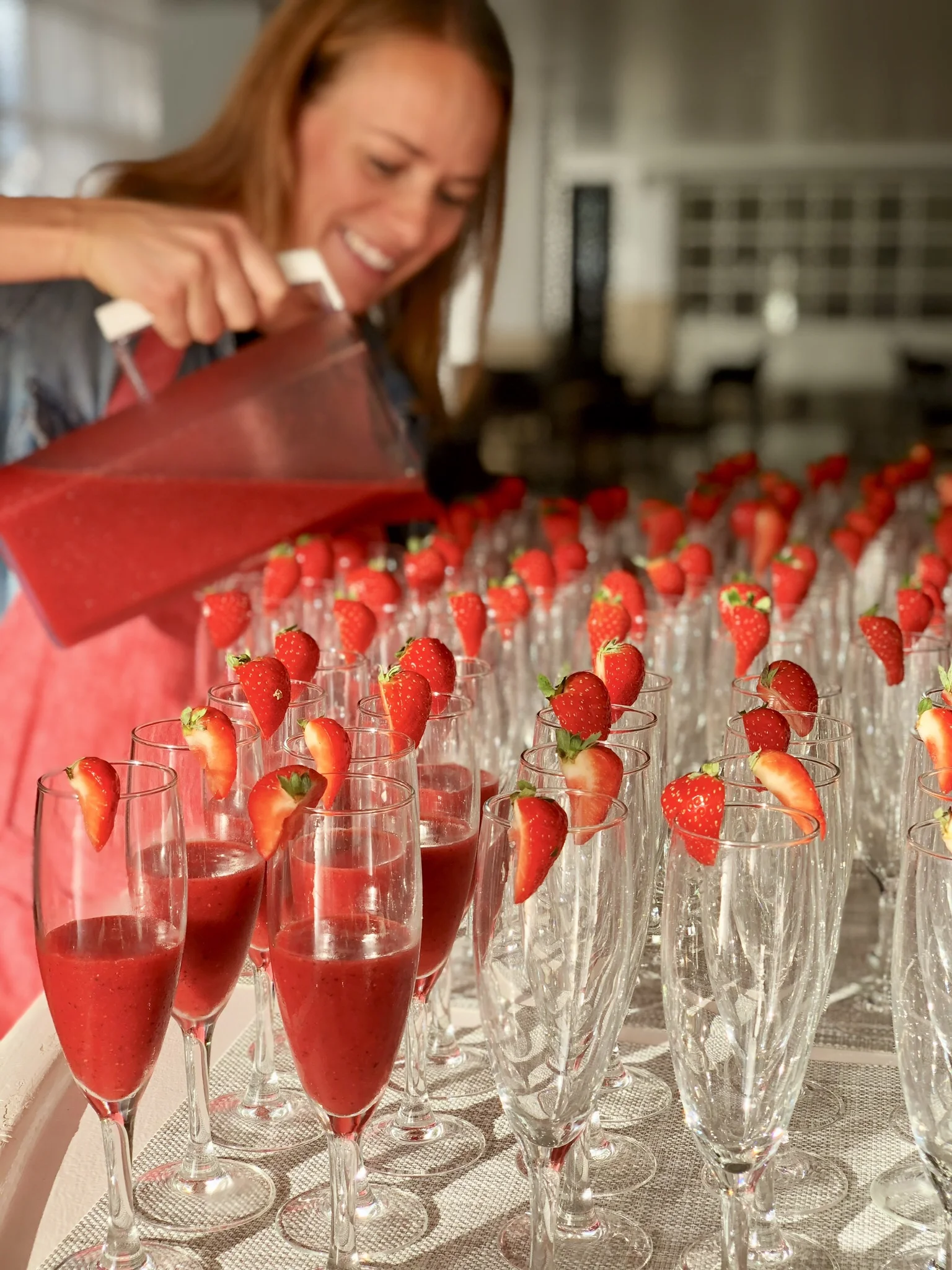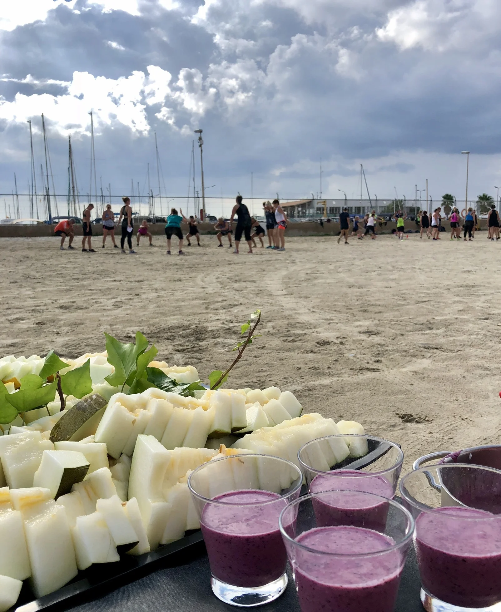 Vi kallar det after yogarun. Jordgubbssmoothie och snacks vid poolbaren.