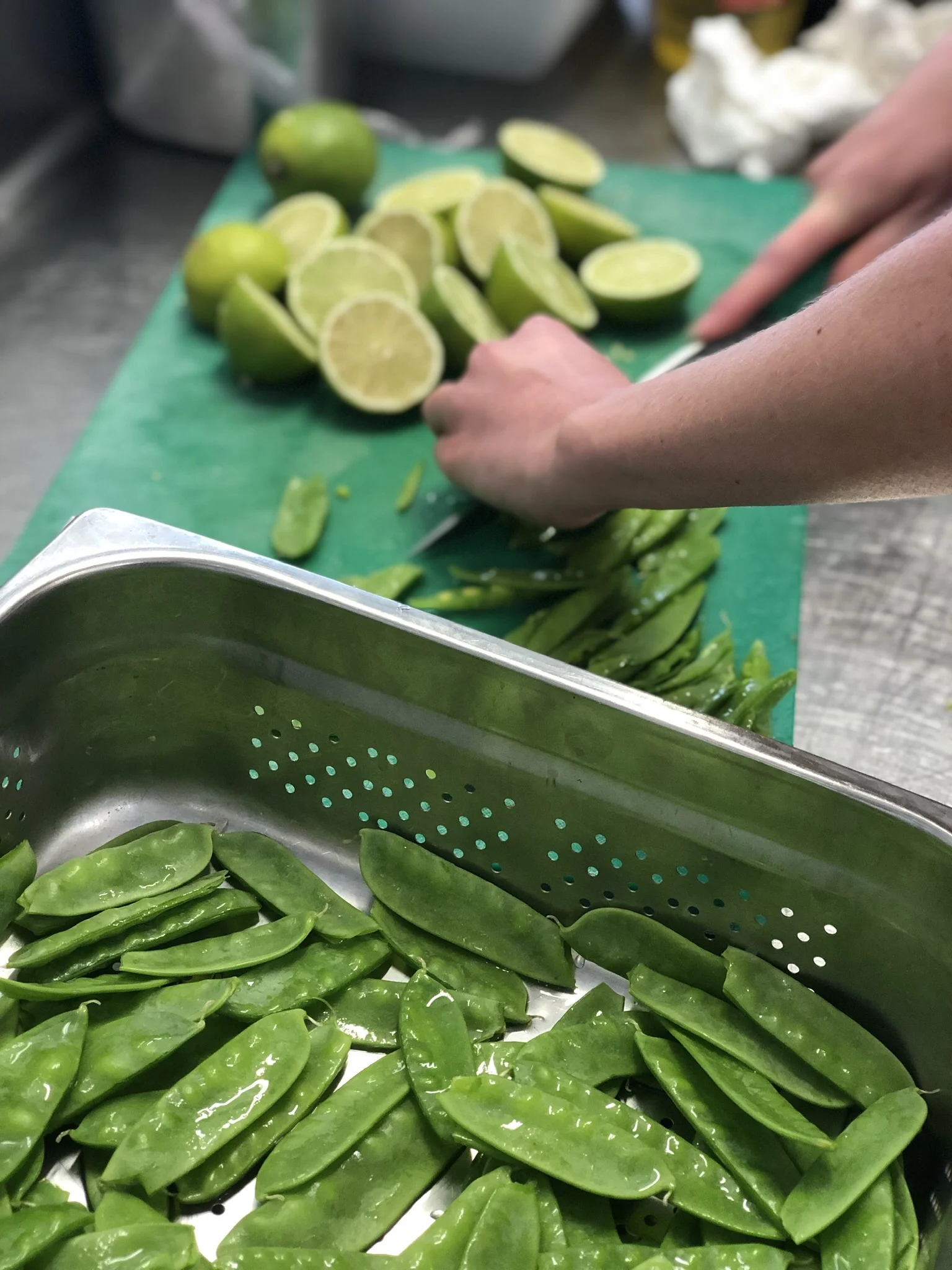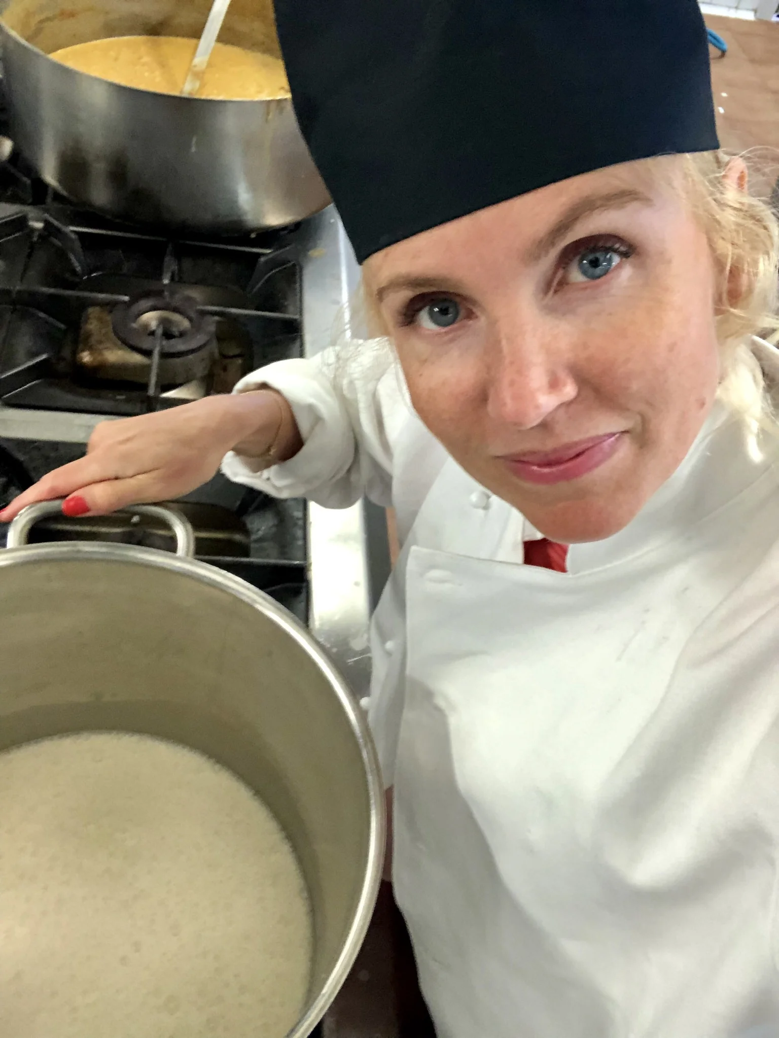 Stor del av dagarna så finns vi här. Vid de enorma kastrullerna i köket. Behöver inte tänka på att lyfta vikter sen kan vi lova. Köket här är helt enormt och till lunch och middag lagar vi grön inspiration till över 200 gäster.