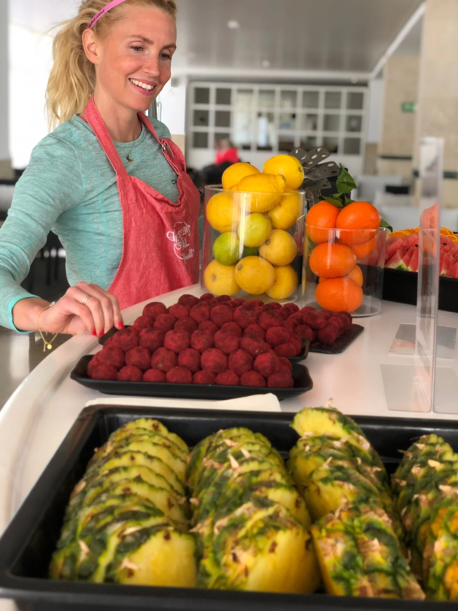 Vi kommer stå i köket och bjuda er på nyttiga mellanmål och gröna inslag till middagsbuffén. Vi är även med och håller i löp-och stavgångspass så det finns all tid i värden att kroka arm med någon av oss och ställa alla möjliga frågor om mat och hälsa. Ju mer desto bättre, vi älskar att prata mat!