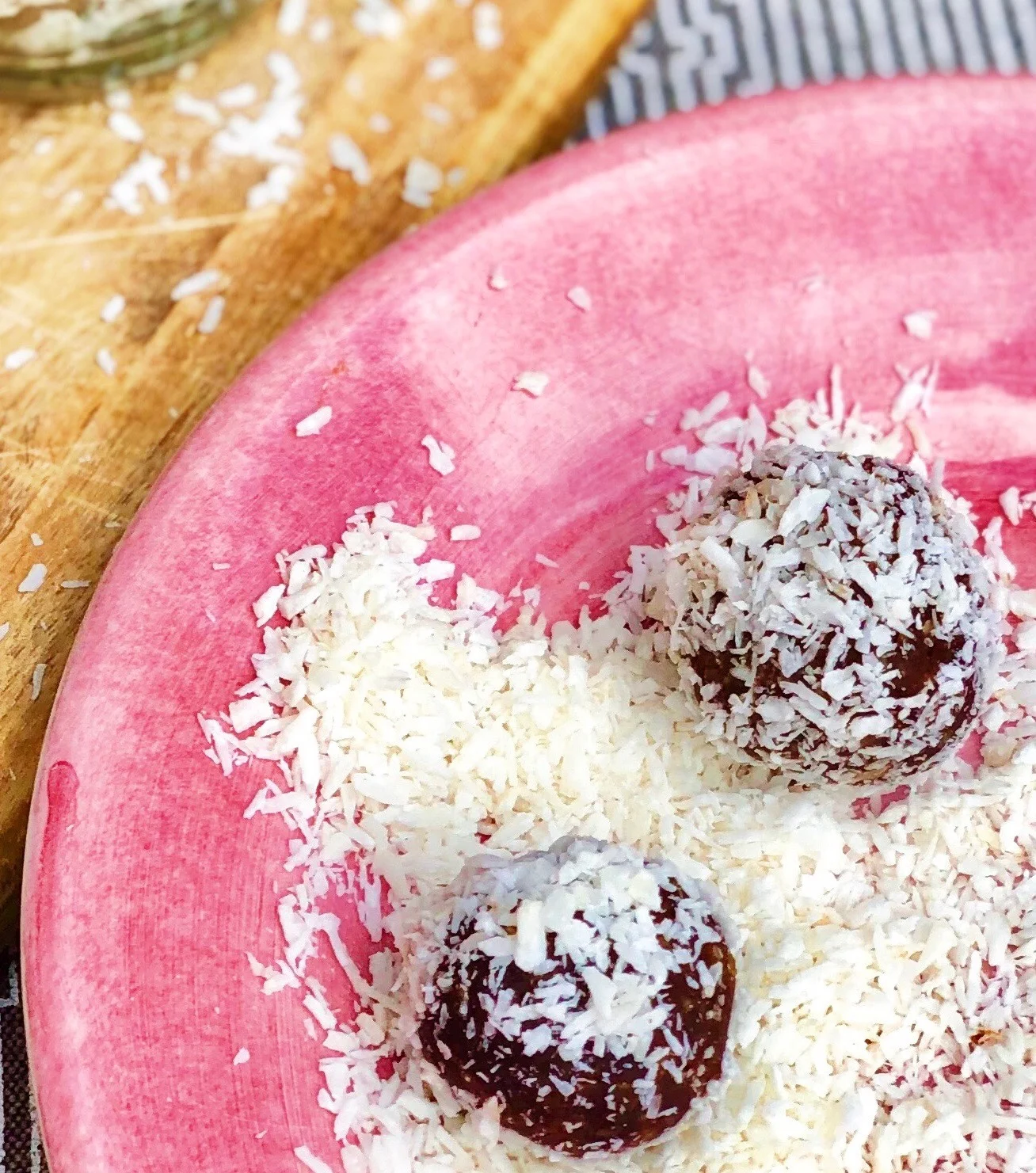 Jätte gott med kokos men vi gjorde även ett gäng bollar som vi rullade i lingonpulver, mer kakao, finkrossade jordnötter (gott men lite svårt att fästa), lakritspulver och blåbärspulver. Alla blev väldigt goda! Kanske får alla rulla sina egna bollar och välja strössel själv! Lördagsgodis var det här!