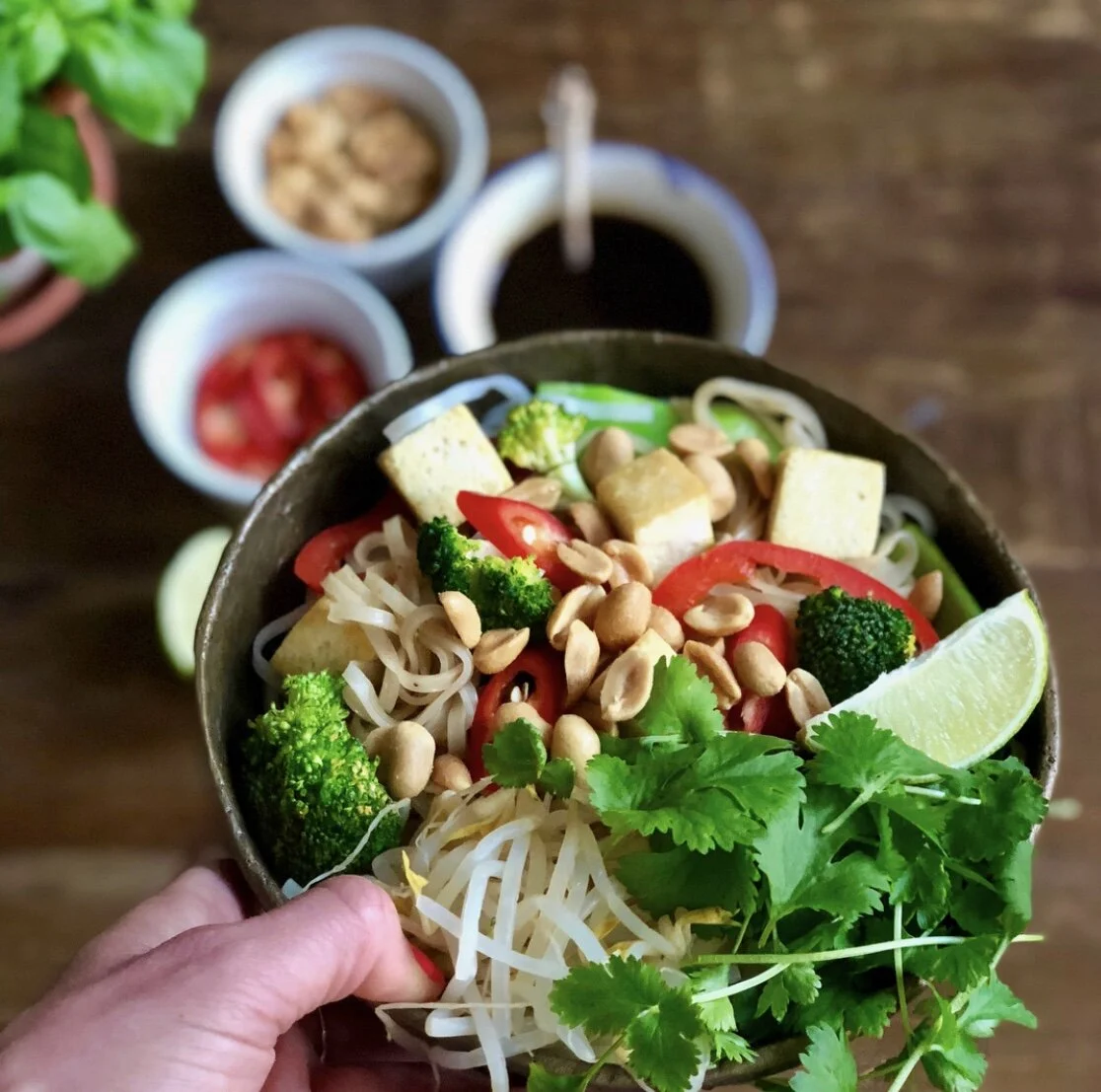 När vi var studenter var det vardagslyx en dag i veckan när vi köpte med oss en Pad thai hem och delade framför en favoritserie i soffan. Det var enorma portioner och passade studentkassan fint. Egentligen rätt lätt att svänga ihop hemma och därför nu ofta en vardagsfavorit hemma hos oss. Vi gör oftast med tofu, men gott även med kyckling eller räkor. Tofu är gjort på sojabönor och innehåller upp till 18g protein/100 g.