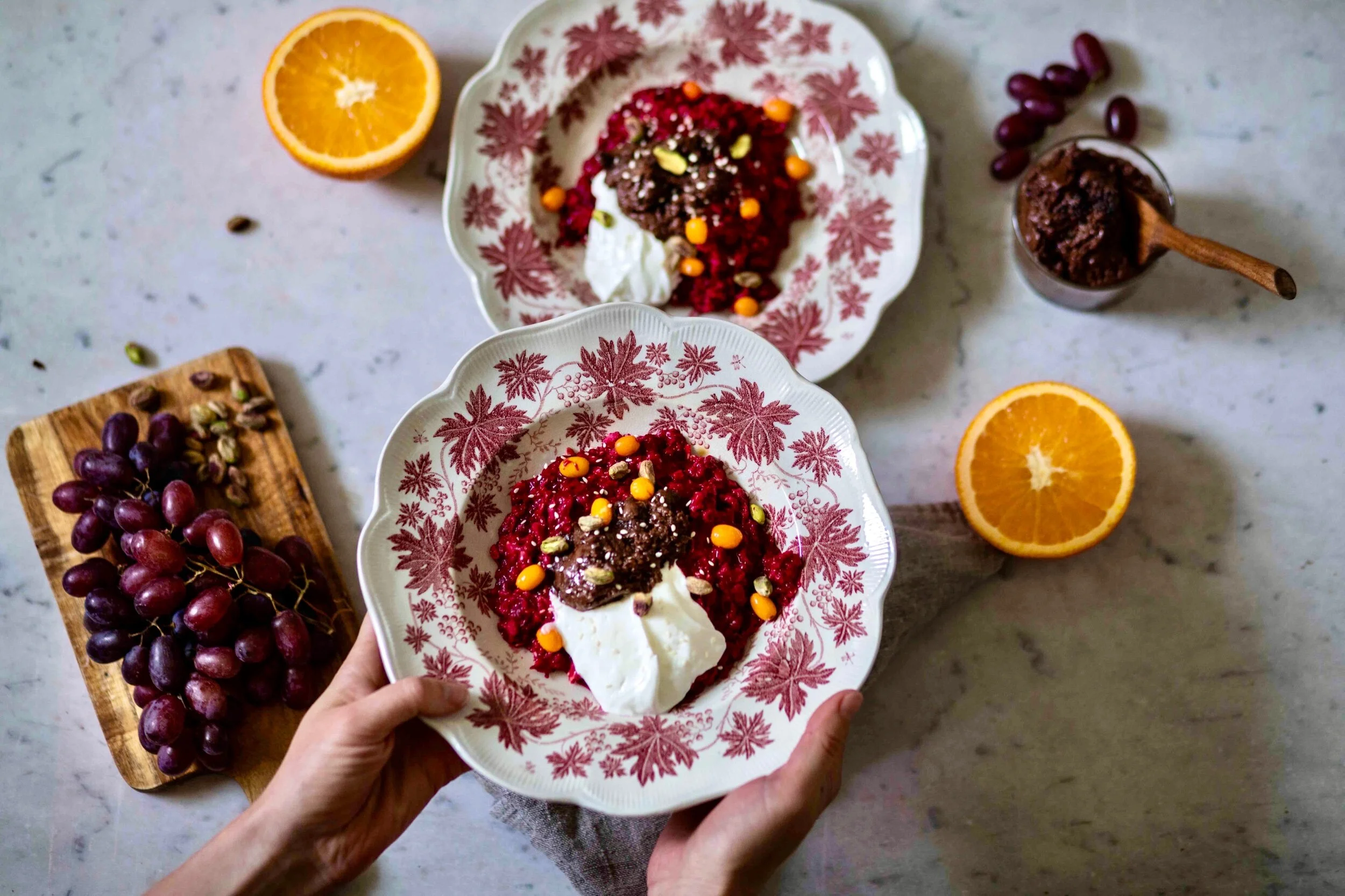 Här kommer en frukostfavorit! Rödbetsgröt med choklad & jordnötsspread!