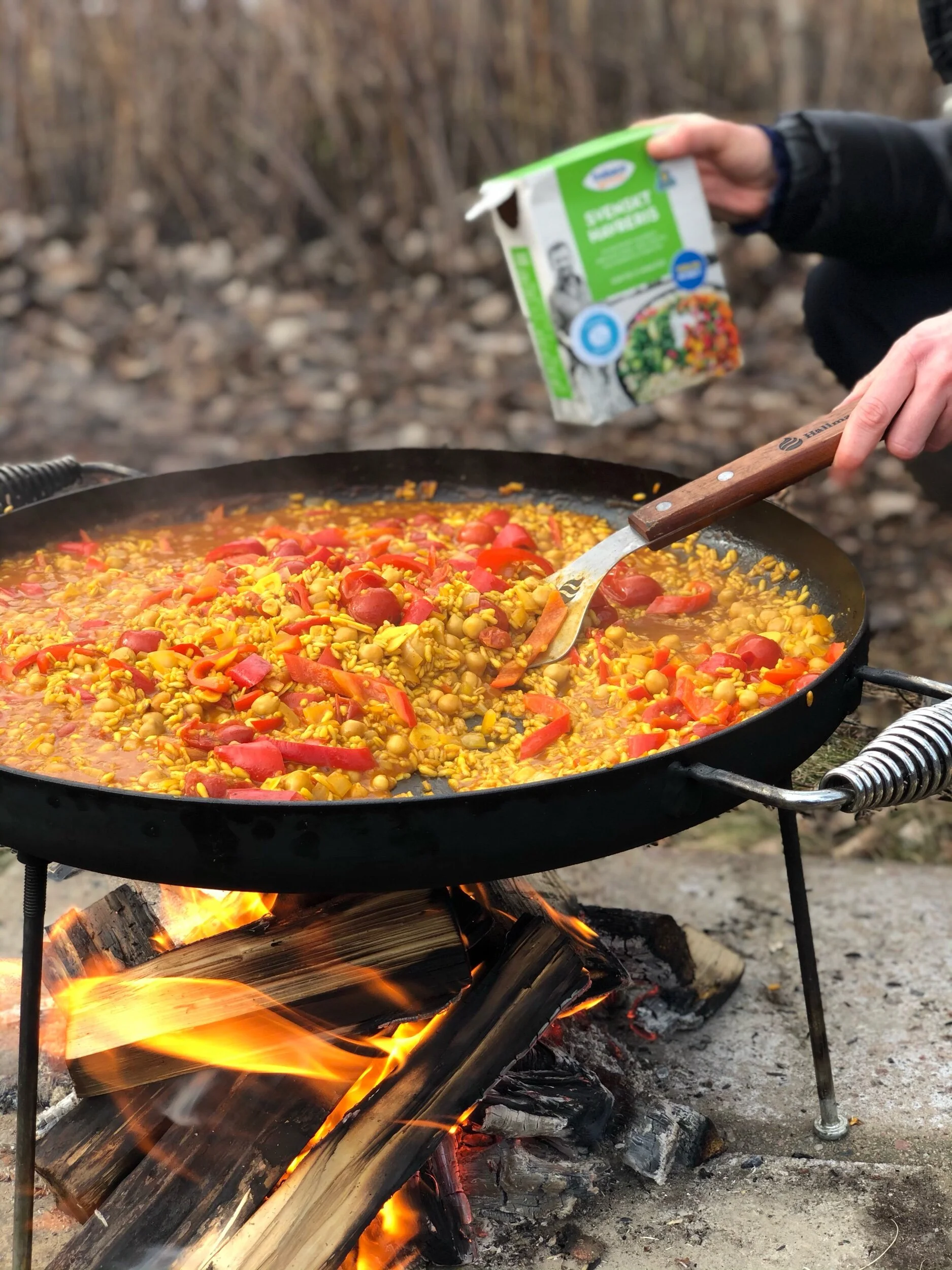 Den här paellan är gjord på Svenskt havreris, SÅ mycket bättre alternativ för klimatet OCH hälsan jämfört med ris, dessutom 100% fullkorn och väldigt gott! Vi tycker du ska testa!