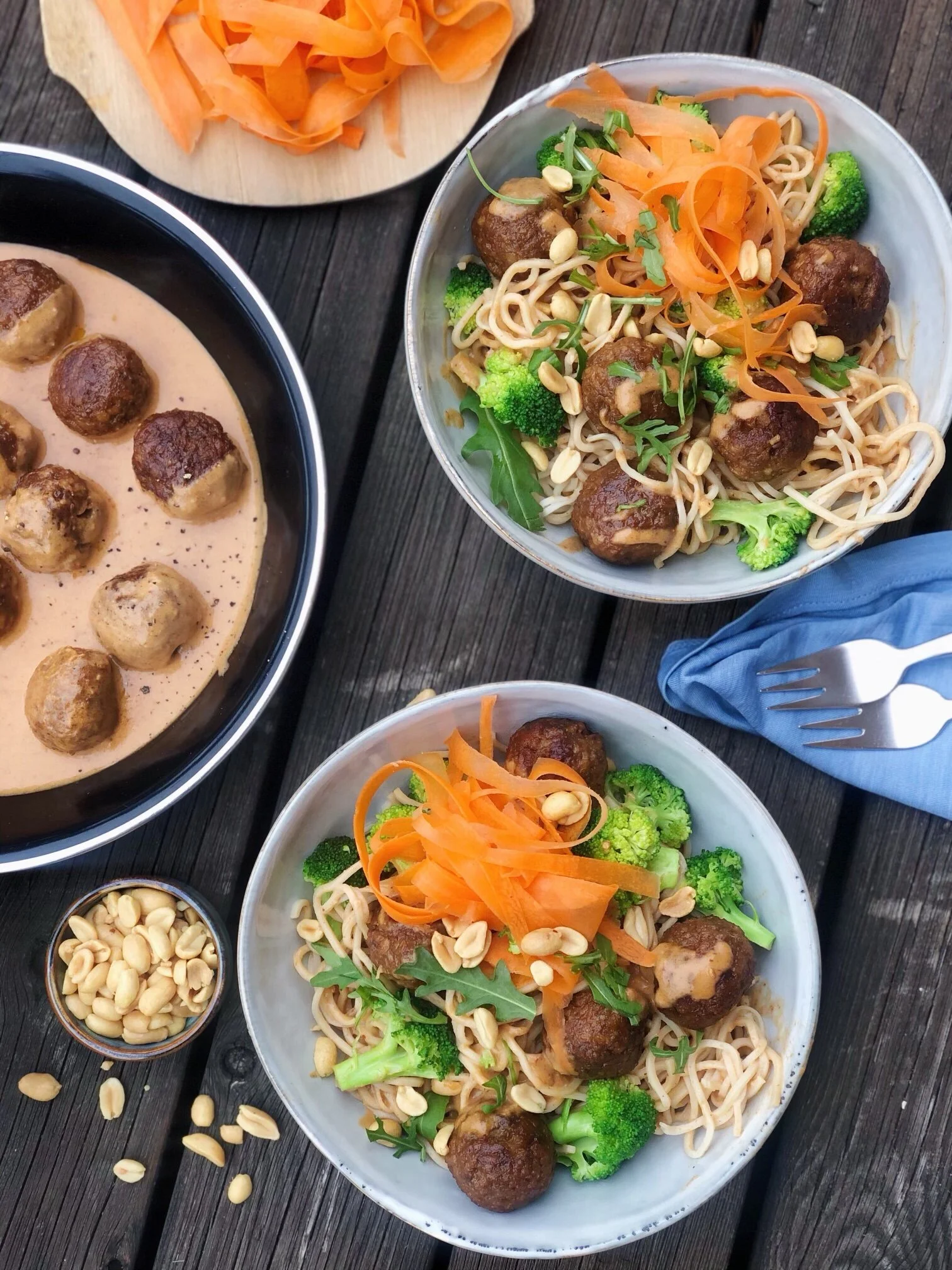 Jordnötsnudlar med asiatiska sojabullar